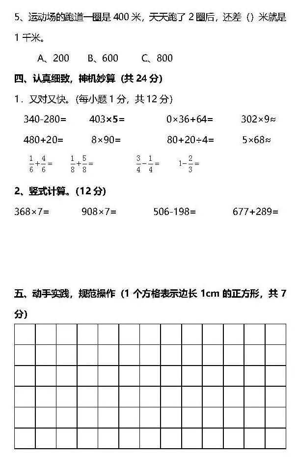 人教1-6年级数学(上册)期末名校密卷⑦ | 可下载