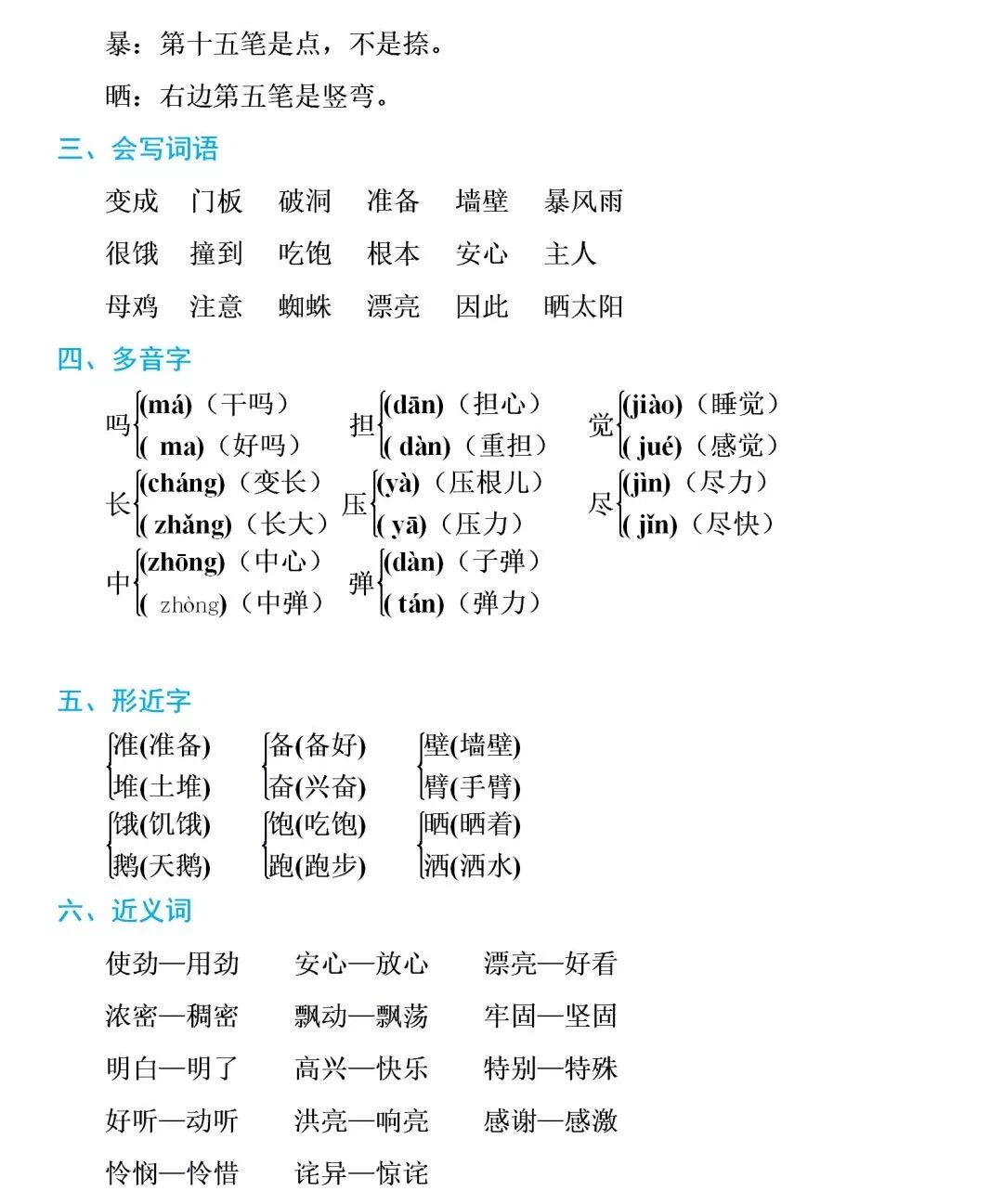 部编1-6年级语文(上册)知识要点盘点