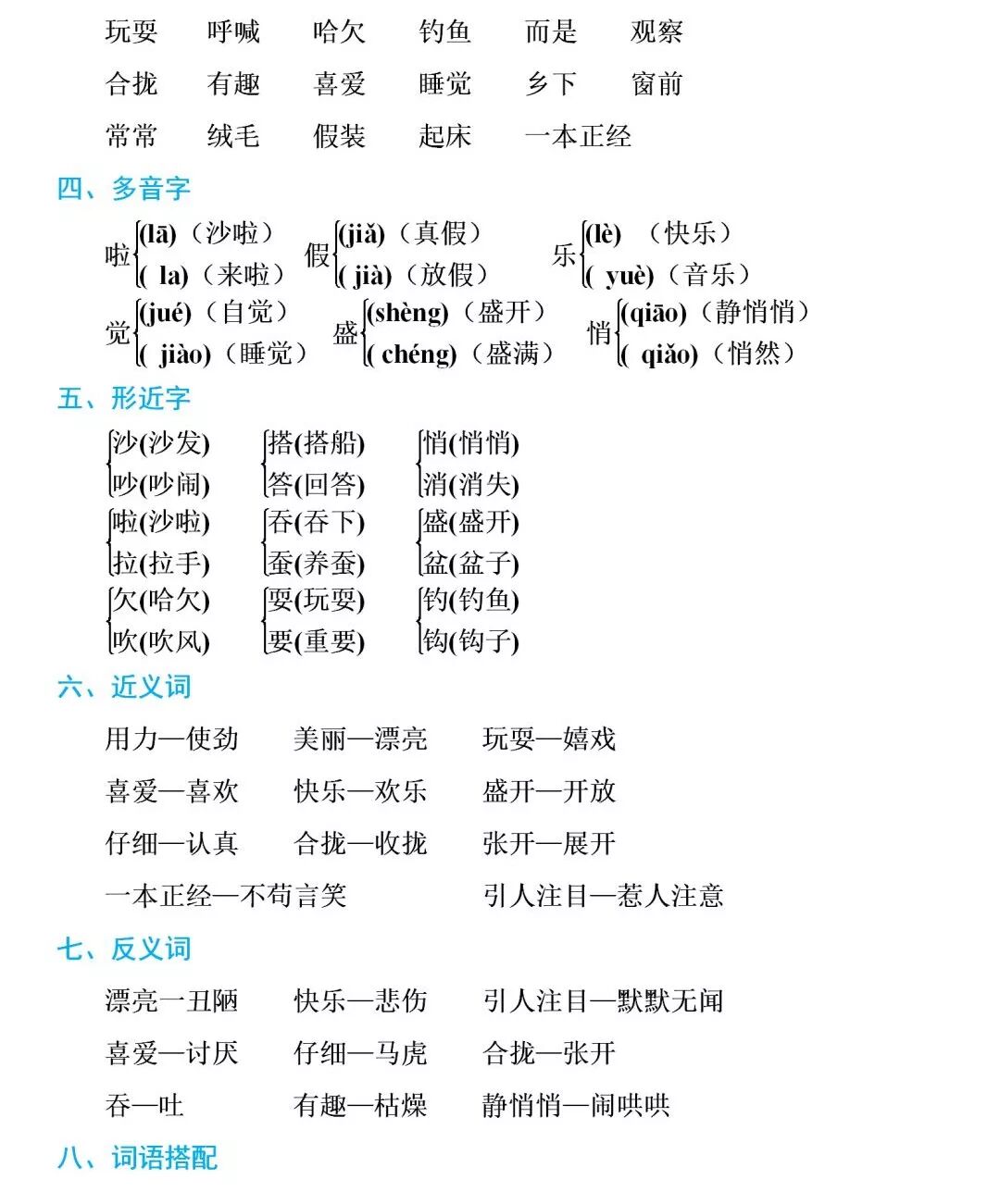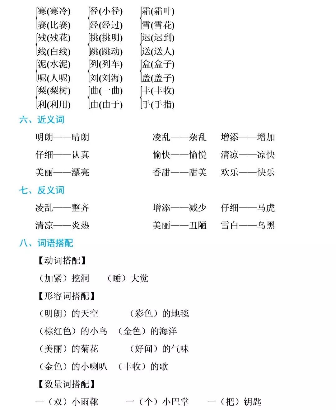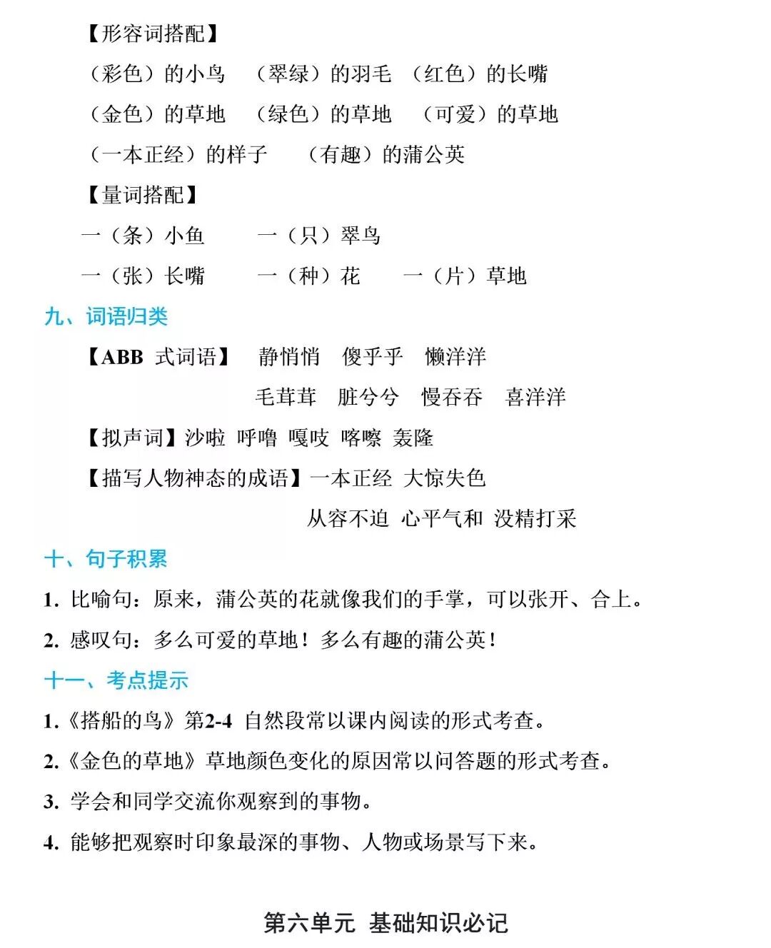 部编1-6年级语文(上册)全册知识要点