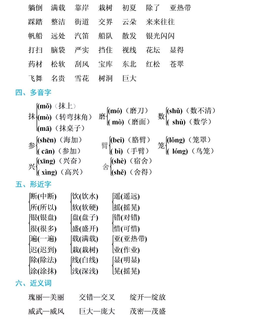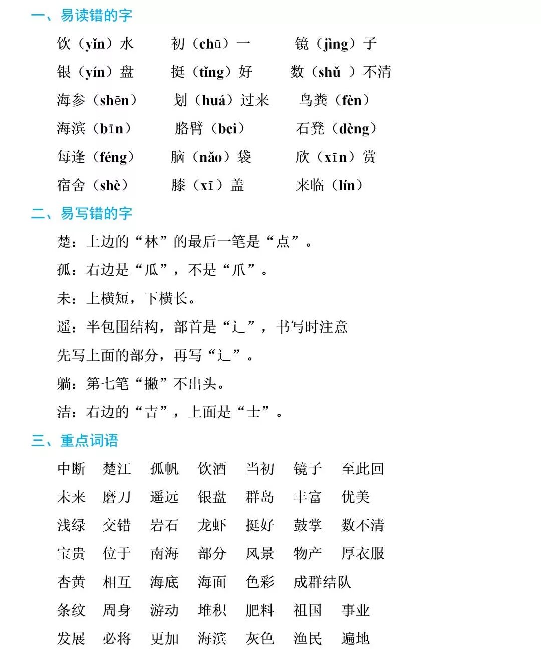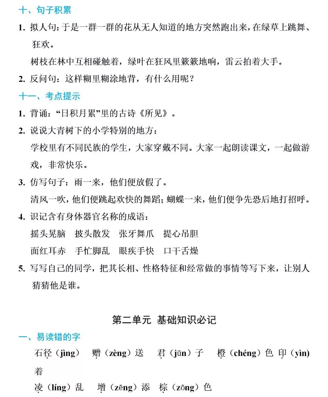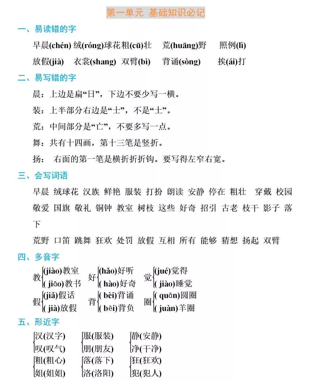 部编1-6年级语文(上册)第一单元知识清单