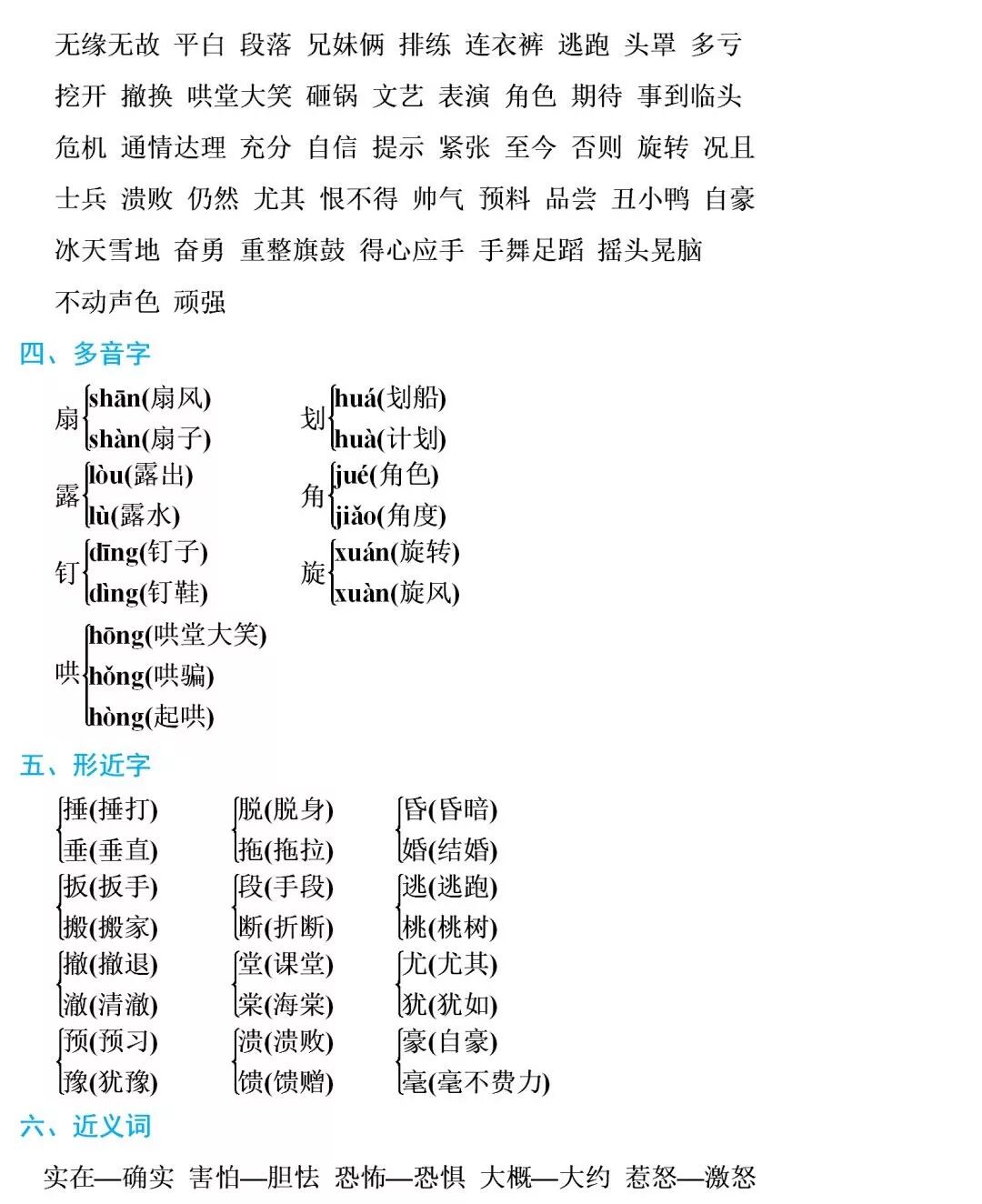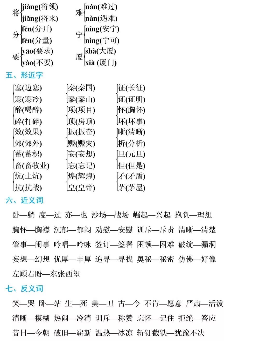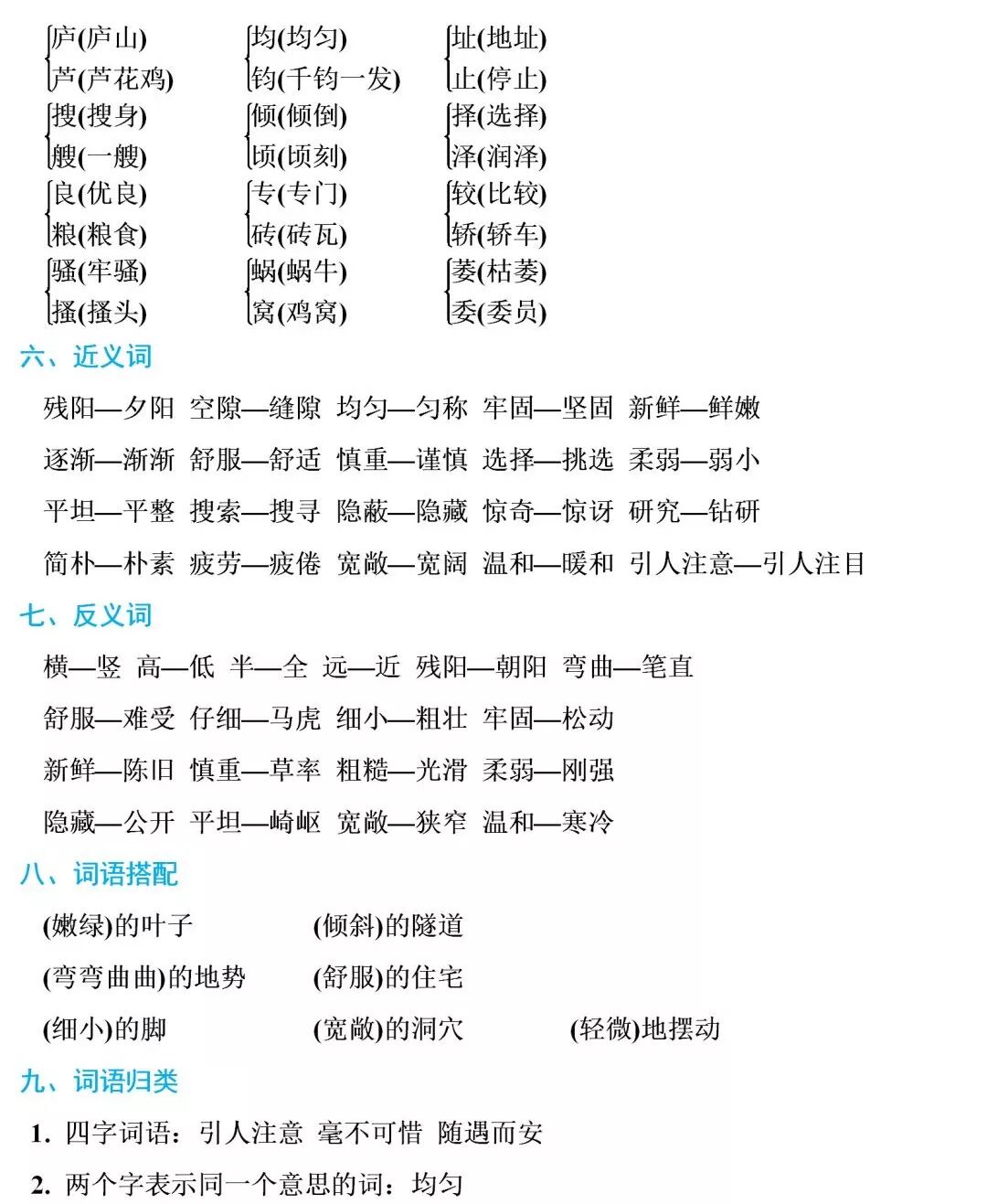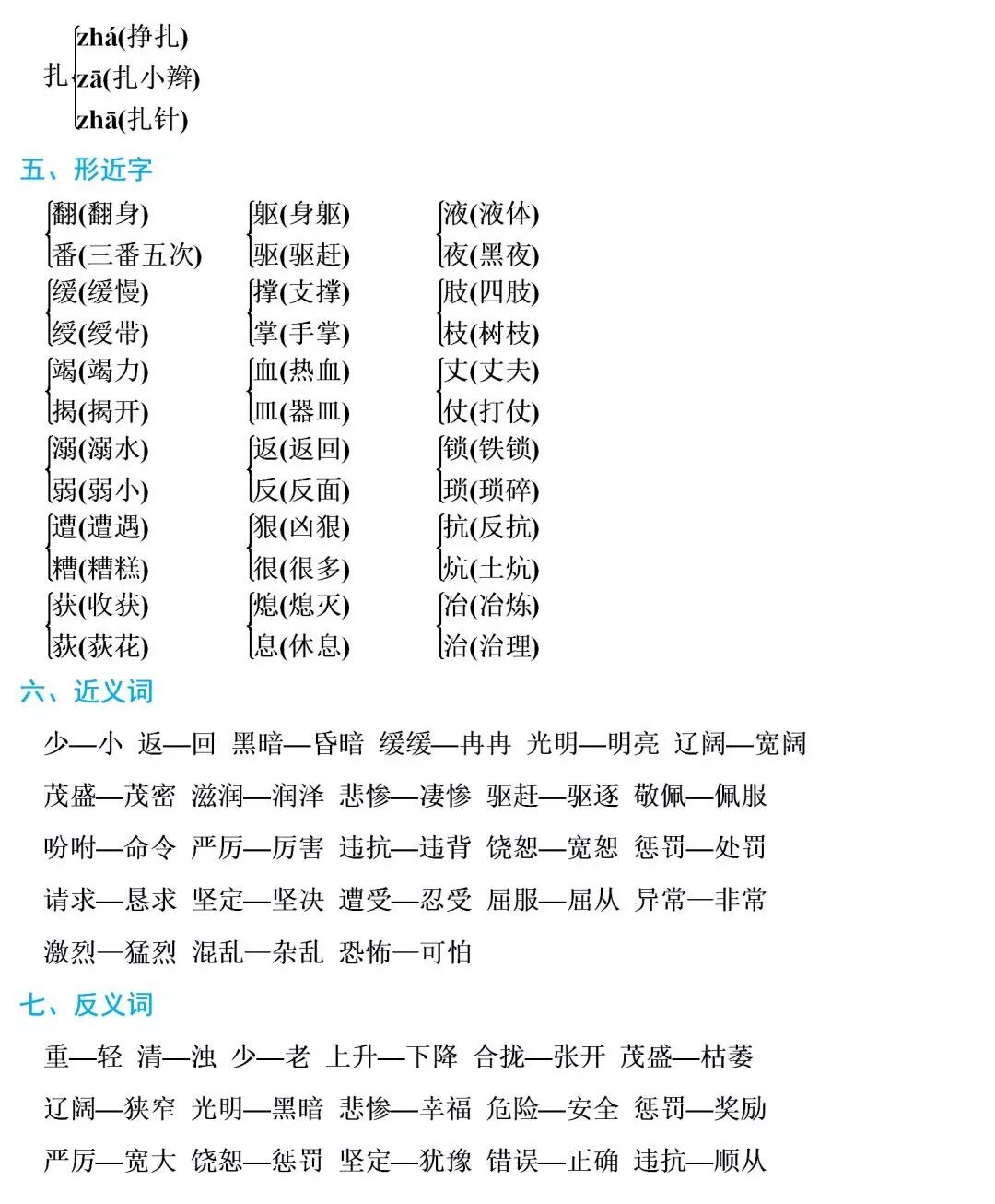 部编1-6年级语文(上册)知识要点盘点,下载打印