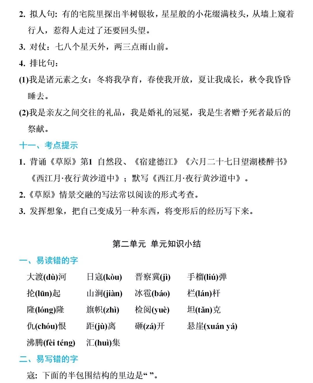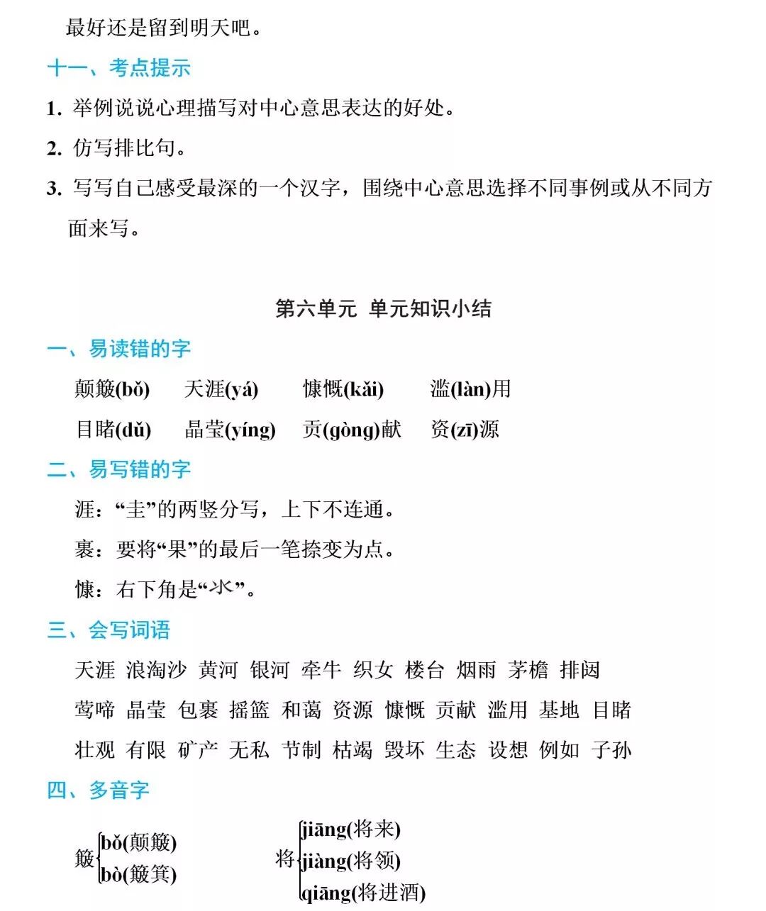 部编1-6年级语文(上册)知识要点盘点,下载打印