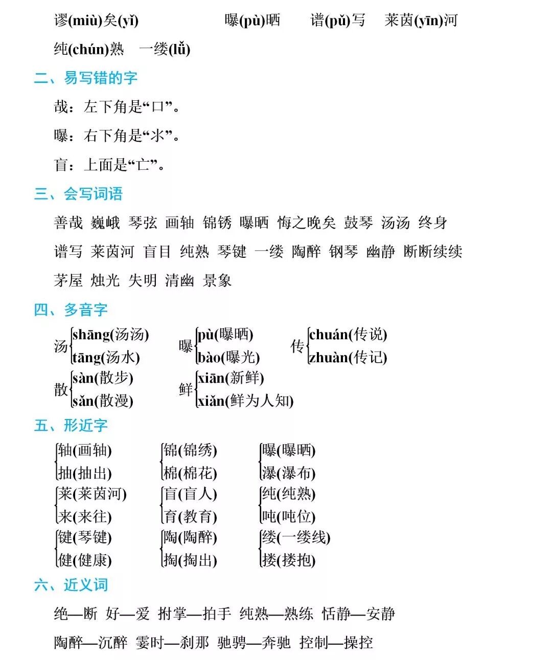 2019部编1-6年级语文(上册)第1单元知识汇总