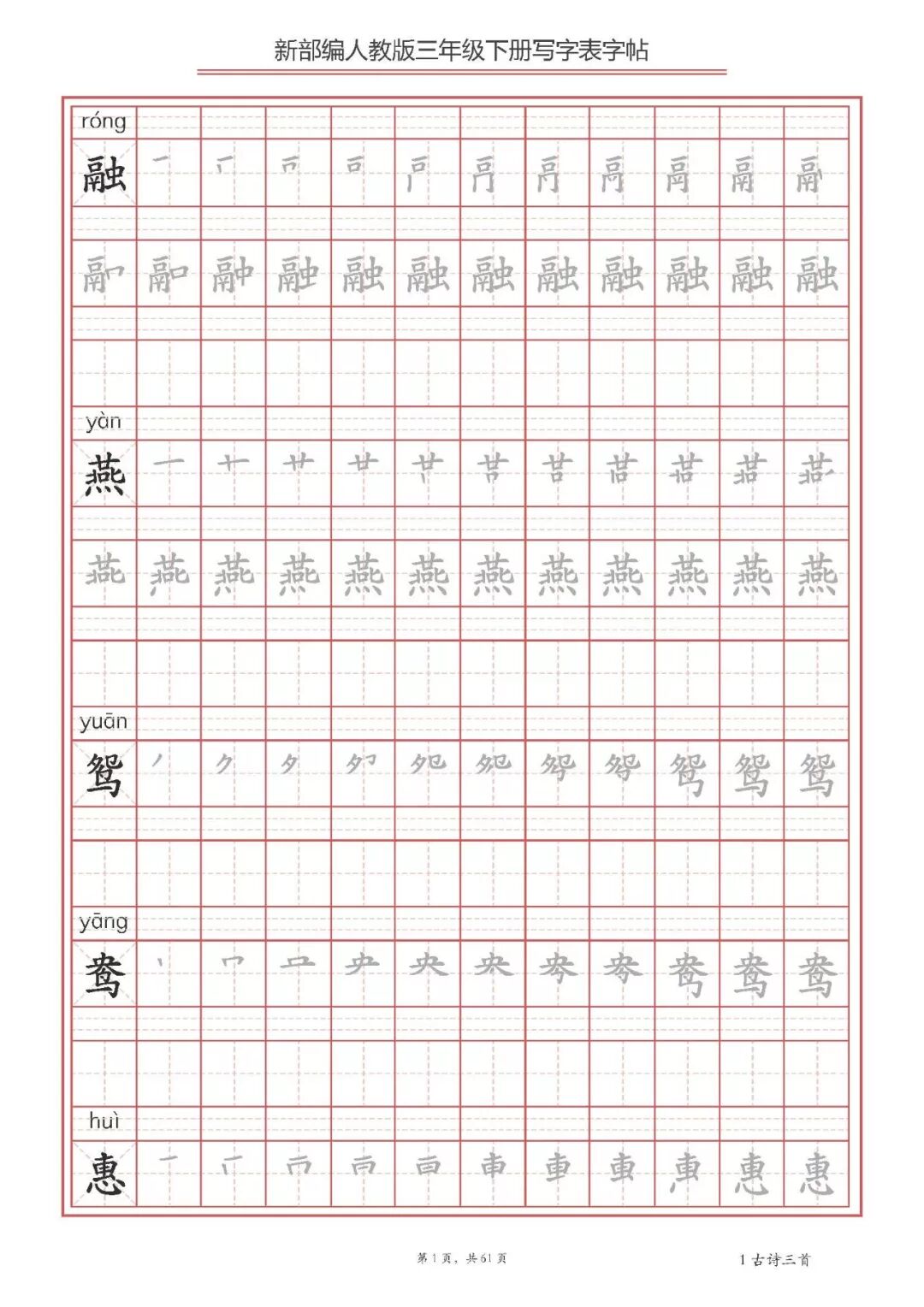 部编三下部分字帖展示