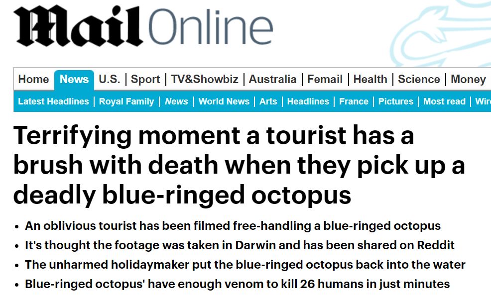 因为对于澳洲人来说,蓝环章鱼是”毒尊“般的存在...
