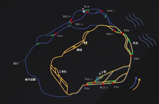 我们几乎只是进行了等比的缩放,保留了道路原本的走向,然后在每个路段进行了赛道的规划和环境的指定。