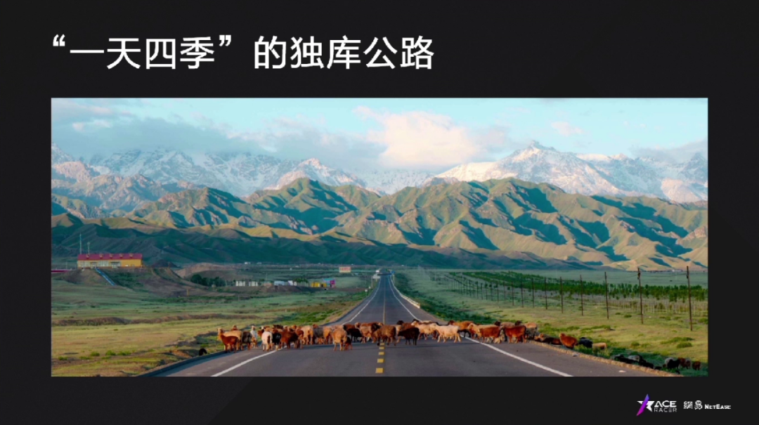 但是这里有一个小小的挑战,我们想在短短5公里的赛道里面去实现500公里的不同的自然地貌,想在游戏里也让玩家感受到一天四季。