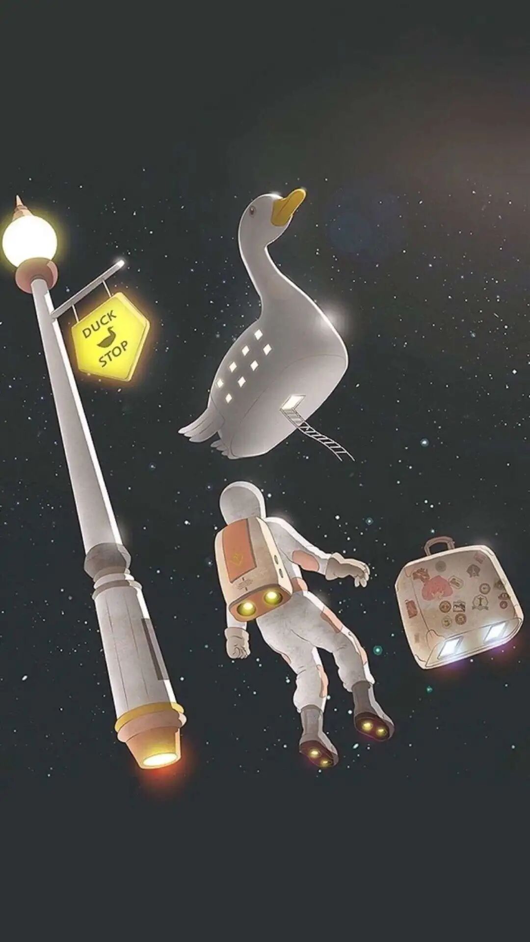 相比以上一位艺术家超现实主义的作品,韩国插画师 Ki Yeon Kim 的作品可是有童趣多了。他画中的宇航员要么坐着鸭子船,要么骑着小摩托,甚至有的还在弹吉他,这些可不就是我梦中的场景吗!▲ 点开查看高清大图后台回复「宇航员」一次下载 240+张从 Kim 的作品中,我们可以看到,就算处在无边的宇宙,学会享受孤独,一个人也可以是有趣的。