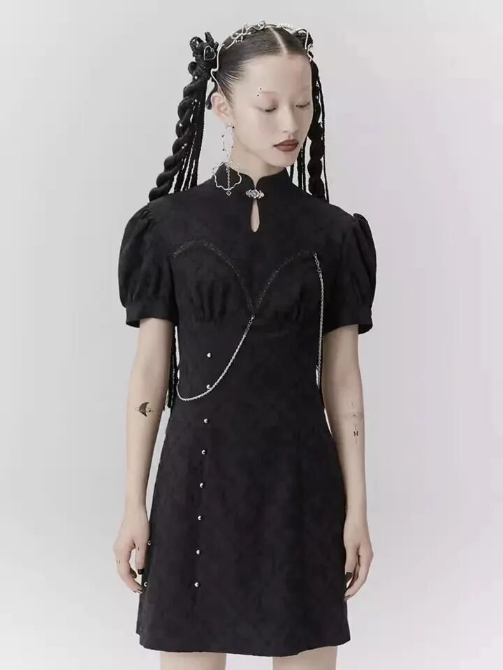 这件中式旗袍是短款设计,