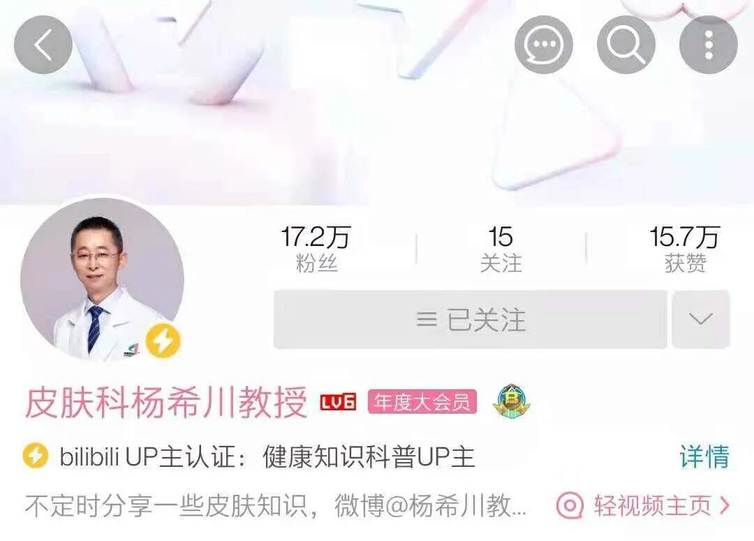 虽然封面图都有点丑(小声吐槽),但是不影响视频内容干货满满呀!除此之外,他也常会科普一些生活中的小常识,比如「跷二郎腿会影响生育能力吗?」「饭后蹦蹦跳跳,胃会下垂吗?」「喝可乐真的会腐蚀牙齿吗?」。▲ 主页指路:https://b23.tv/xdOHye白石菊姐姐本名叫林林,毕业于山东医科大学临床医学专业,目前在山东烟台白石肛肠医院工作。说起肛肠科,大家第一反应可能就是尴尬,毕竟隐私部位实在有点害羞~这种心态致使很多人并不了解肛肠相关的知识,等出现了问题再去医院,就更不好解决了。所以大家要摆正心态,跟着温柔白姐姐的「菊花小课堂」认真学习呀~「每天放几个屁算达标?」「菊花上长痣代表什么」「为啥一拉稀菊花就残?」……转眼夏天已经到来,各种各样的皮肤问题似乎也随着气温升高,全都显现出来。护肤最忌讳的就是病急乱投医,学会科学护肤才能真正做到事半功倍,那接下来的两位皮肤科医生一定不能错过呀!▲ 主页指路:https://b23.tv/WJAm1o杨教授是现任陆军军医大学西南医院皮肤科的副主任,他可是拥有自己的百度词条哦,专业程度毋庸置疑!大家不要被他的各种名头吓到,其实他只是一个爱在封面图上给自己画腮红的可爱男人~杨教授视频的内容也比较接地气,主题都是「鸡皮肤」「祛痘」「缩毛孔」等年轻人苦恼的问题。他还会更新相的专栏,教大家解读护肤品成分等,干货十足。目前杨教授在 B 站已经拥有了 17 万粉丝,但是以他的宝藏程度这点数量远远不够!所以助友们都给我冲鸭~今年 B 站百大,我必须看到可爱的杨教授!▲ 主页指路:https://b23.tv/mZVI8v魏医生是北京大学皮肤性病学的博士,是一位智慧与可爱并存的优质男青年!他号称自己是「能让你变美的 UP 主」,这么多期视频看下来,我觉得这个口号并不夸张。他视频的风格比较活泼,讲的内容也通俗易懂,很适合护肤小白观看。视频也更得勤,不怕不够看~偶尔也会更新一期自己的生活 VLOG,脱掉白大褂之后,沙雕气质暴露无遗,真的超级圈粉。魏医生为了做视频,还会亲自去打瘦脸针、做光子嫩肤,向大家传授自己的亲身体验。现在的年轻人们不再谈性色变,但是有多少人真正了解性知识呢?性知识可不只与性行为相关,不同的性别的身体特征,差异等,也是性知识的一部分!想了解的话,接下来两位 UP 主可千万不能错过~▲ 主页指路:https://b23.tv/1zPtbH他曾是北京一家三甲医院的妇产科医生,目前是一位全职科普 UP 主。所以相较于其他在职的医生,他的视频制作水平是最高的。六层楼的视频内容主要以妇科知识,和两性知识为主。各位女孩子一定要多了解,爱护自己的身体是最重要的!除了制作科普视频,六层楼还特地开辟了「老六瞎聊」的专栏,将收到的问题晒出来,与粉丝们一起交流。这些问题不止限于生理健康,还有很多关于情感、家庭,所以大家在这里不仅能收获医学知识,还能学习如何处理亲密关系。▲ 主页指路:https://b23.tv/CM8ZHb