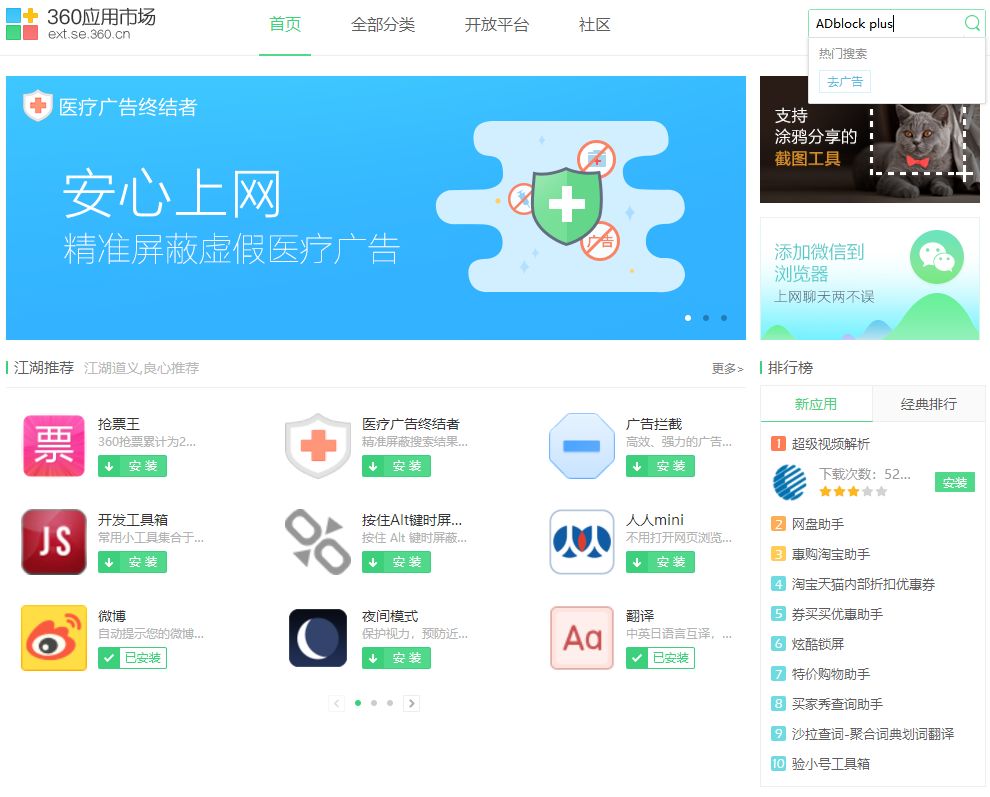 还好朋友给我推荐了他唯一持续用的插件——「广告过滤神器」Adblock Plus。