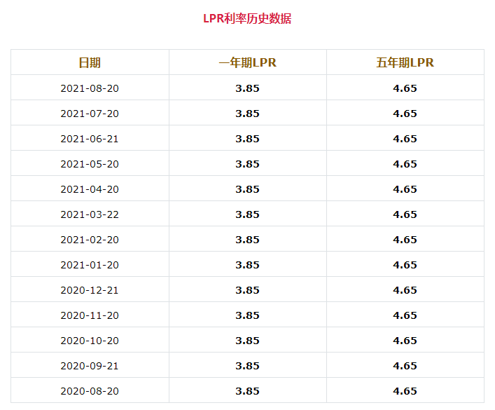 这里还有一个问题,一年期LPR不一定总是3.85%,每月20日全国银行间同业拆借中心或中国人民银行官网可以查询当月LPR。