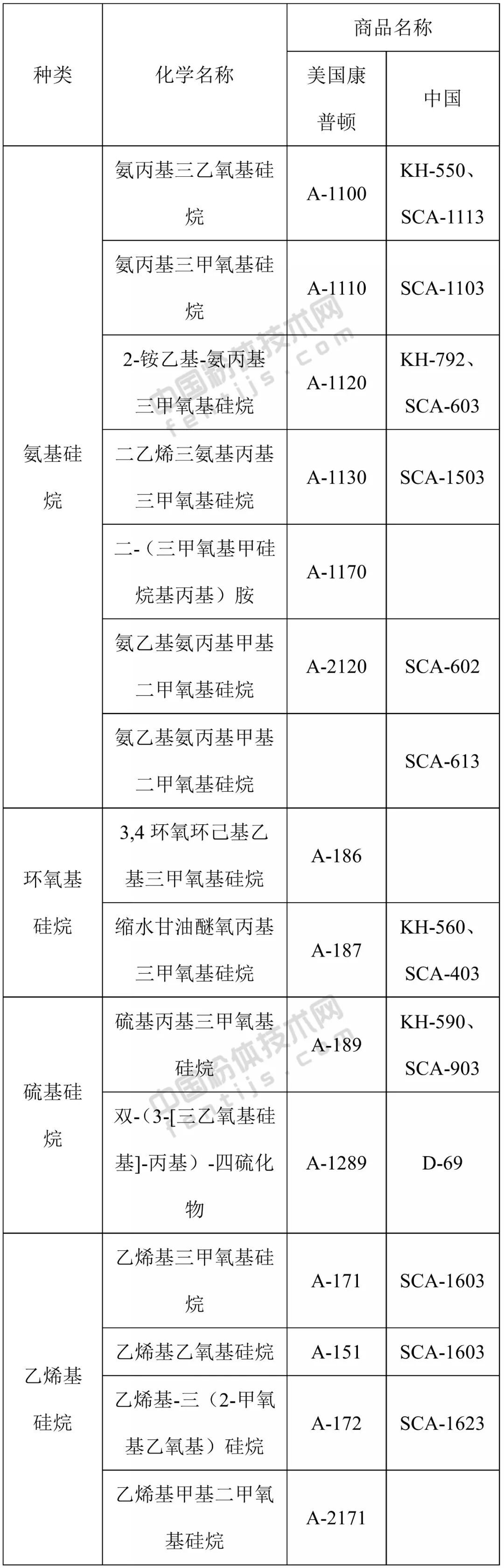 适用对象:硅烷偶联剂可用于许多无机粉体,如填料或颜料的表面处理,其中对含硅酸成分较多的石英粉、玻璃纤维、白炭黑等效果最好,对高岭土、水合氧化铝、氧化镁等效果也比较好,对不含游离酸的钛酸钙效果欠佳。选择硅烷偶联剂对无机粉体进行表面改性处理时一定要考虑聚合物基料的种类,也即一定要根据表面改性后无机粉体的应用对象和目的来仔细选择硅烷偶联剂。