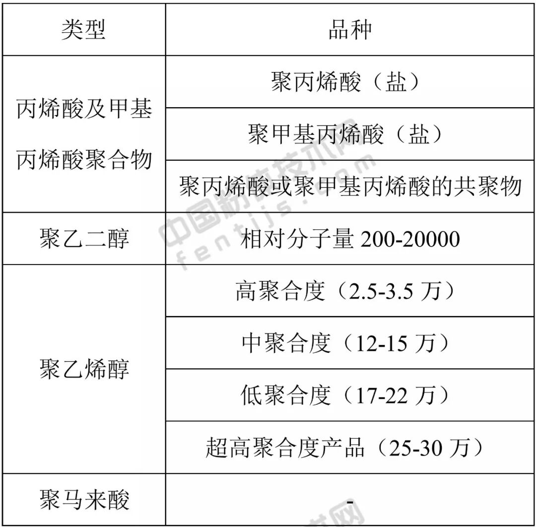 水溶性高分子又称水溶性树脂或水溶性聚合物,是一种亲水性的高分子材料,在水中能溶解形成溶液或分散液。水溶性高分子可以分为三大类,即天然水溶性高分子、半合成水溶性高分子和合成水溶性高分子。目前,粉体表面改性用的主要是合成水溶性高分子的聚合类树脂。