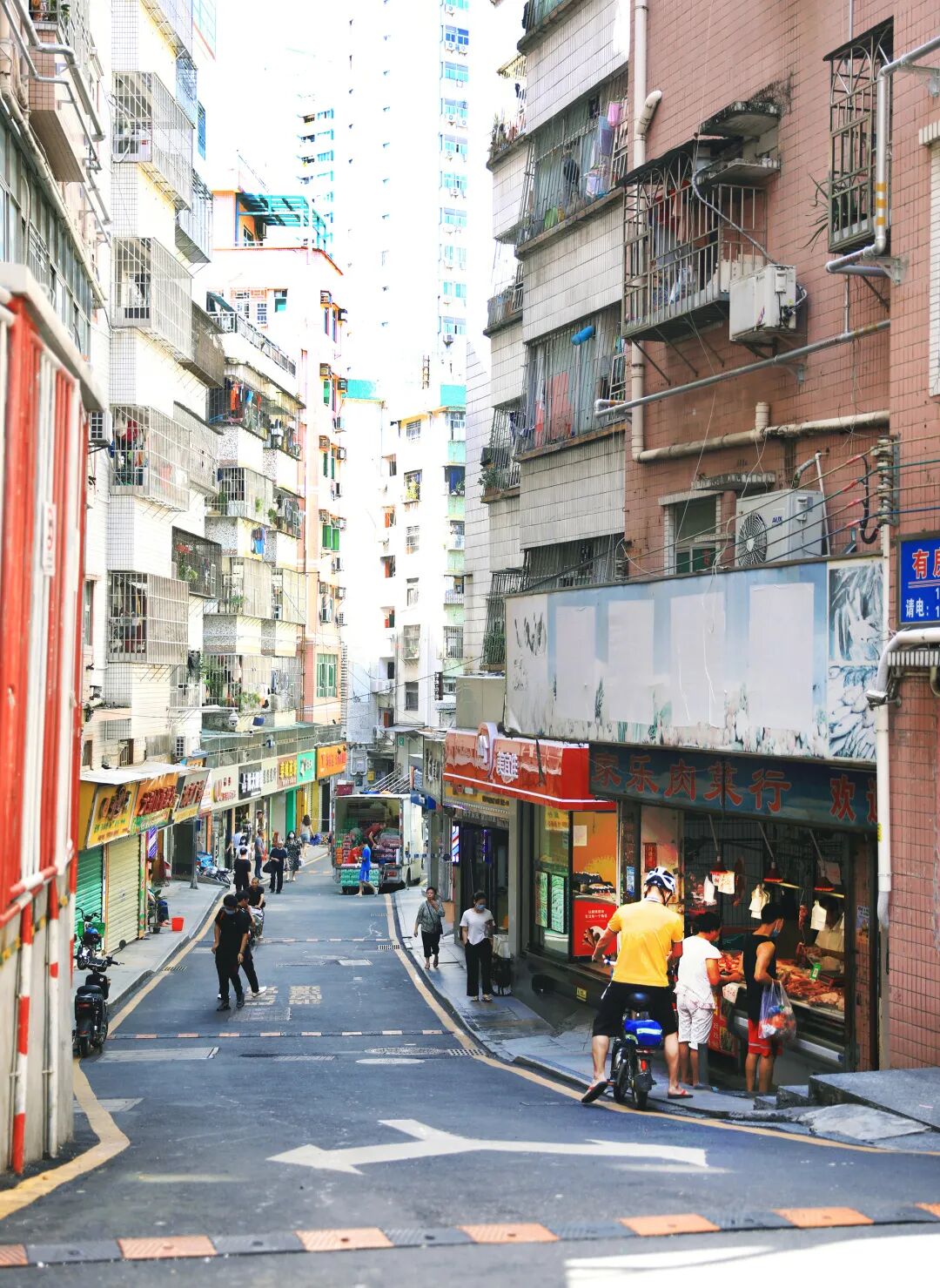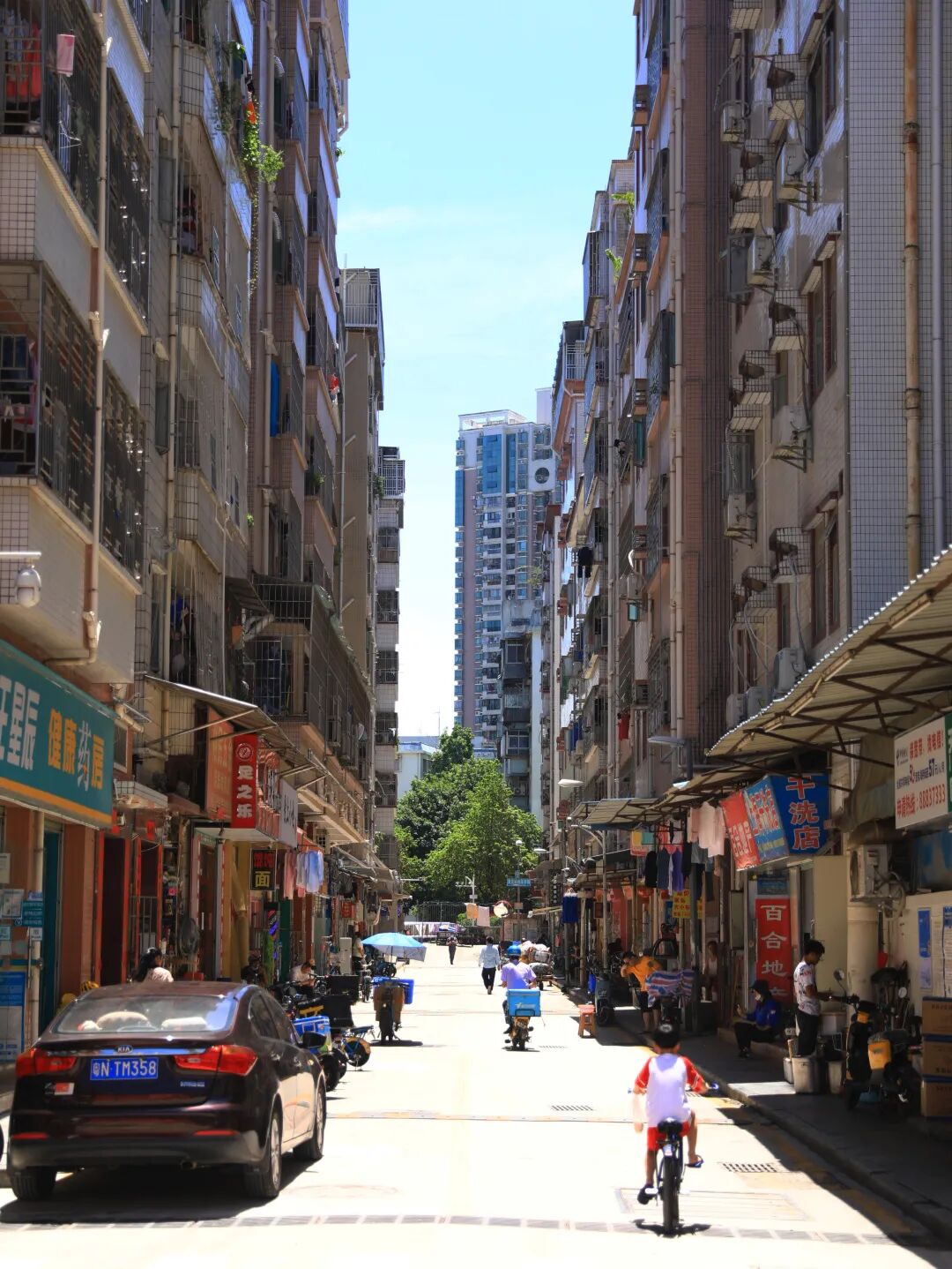 曾经很多外来务工者都是住在握手楼里。握手楼之间的间距非常狭窄。黄贝岭现存的500多栋握手楼,从2019年开始综合治理,治安、消防、雨污分流等都是治理重点。社区书记杨海鹏就是在治理任务最艰巨的阶段来到了黄贝岭。