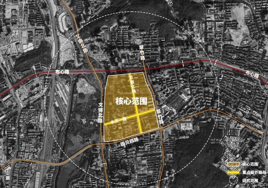 ◇ 核心范围:文锦北路以东、翠竹路以西、布心路以南、田贝四路以北围合区域。其中重点设计路段为贝丽北路、水贝一路。