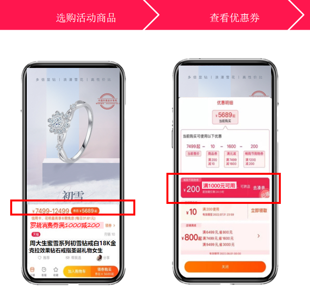 ①消费者可登录手机淘宝,搜索“罗湖福利购”进入“爱购深圳 爱尚珠宝”专题页面领取消费券。