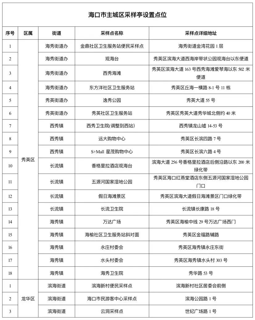 根据我市疫情防控形势需要,为方便群众核酸检测采样,我市调整了疫情期间核酸采样亭服务点及服务时间,现将有关情况通告如下: