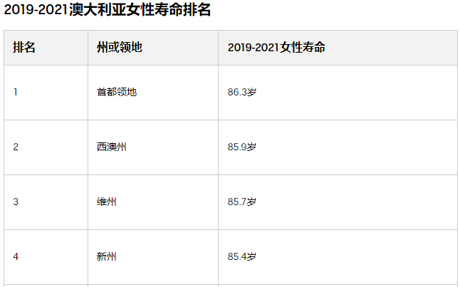 澳大利亚统计局本月公布的最新数据显示,目前澳大利亚女性的出生时预期寿命为85.4岁,男性为81.3岁。![]()