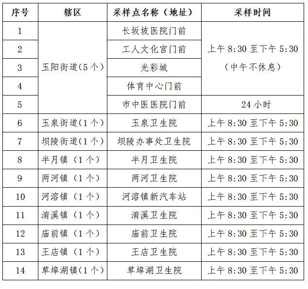 当阳市常态化核酸采样点设置一览表