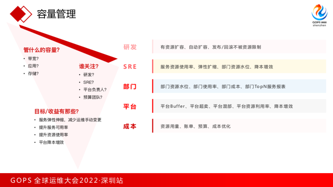 目标收益是做之前要想清楚的。这里是每个角色对容量管理的预期: