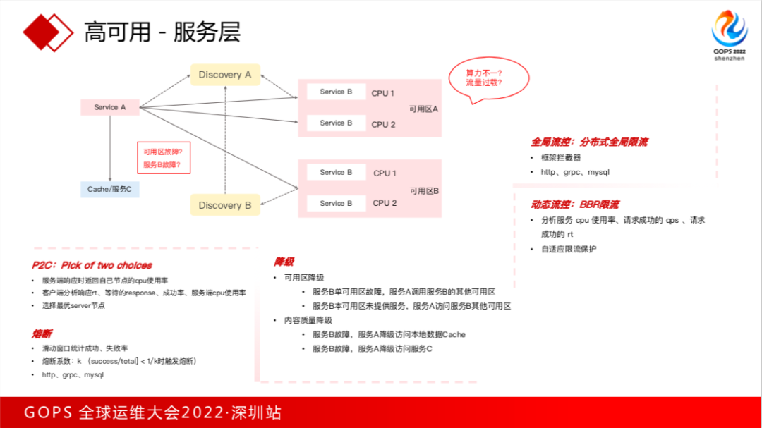 内容质量降级,服务B故障服务A可以访问本地缓存/降级服务。在我们场景里,如果播放地址失败会降级到灾备播放地址。B站首页APP推荐可能是动态的,推荐系统故障也会降级给用户热门视频。