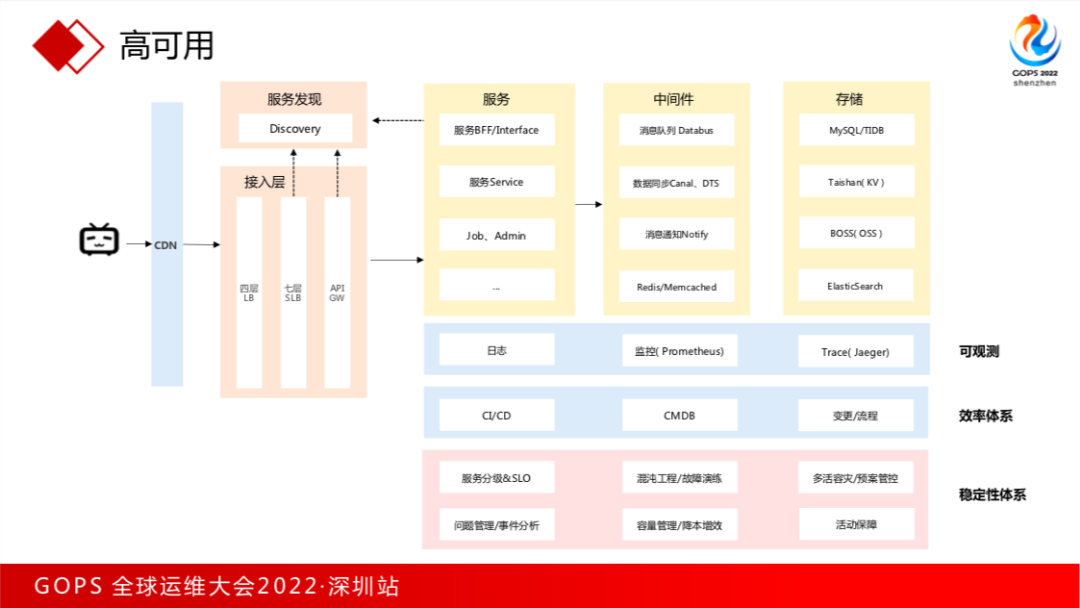 下面介绍一下转型过程中具体的解析。首先是稳定性保障(高可用、多活、容量管理、活动保障)。