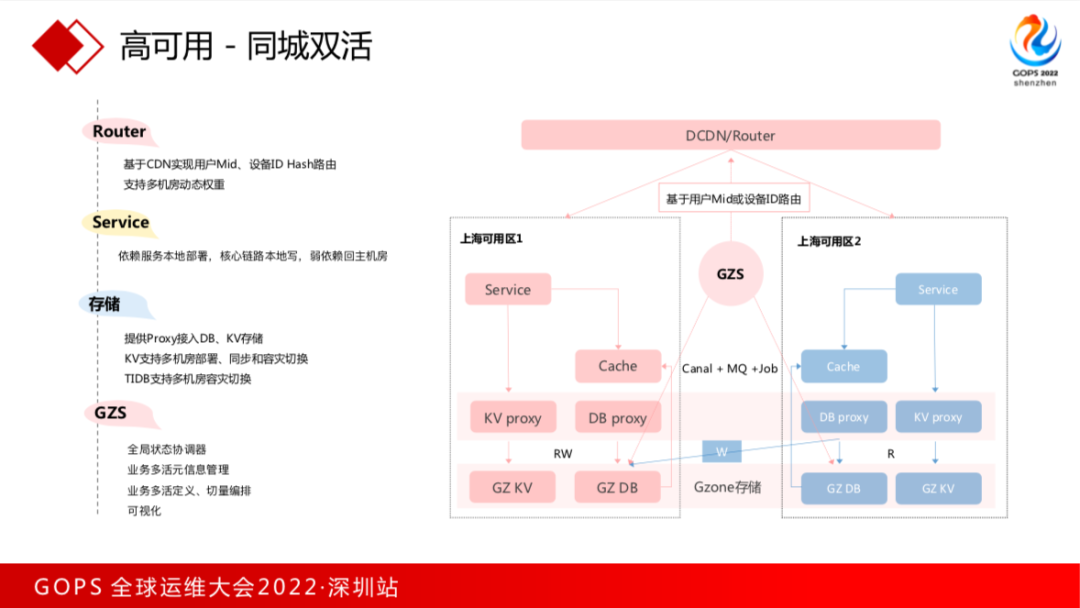 存储层面最早多活没有 Proxy 组件,需要业务自己决定哪个机房读/写(管理成本特别高)。我们后来统一做 Proxy 做业务接入管理。