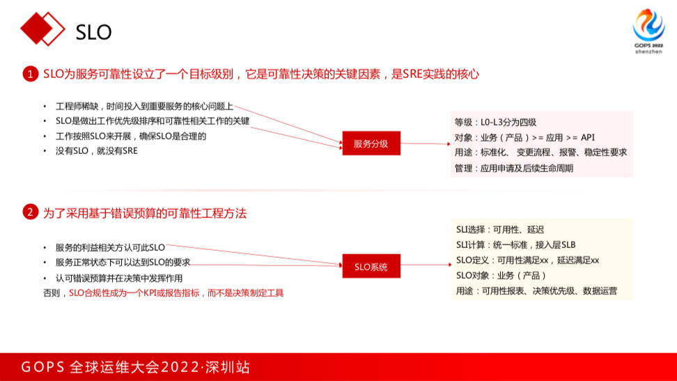 SLO 为服务可靠性设立了一个目标级别,它是可靠性决策的关键因素,是 SRE 实践的核心。