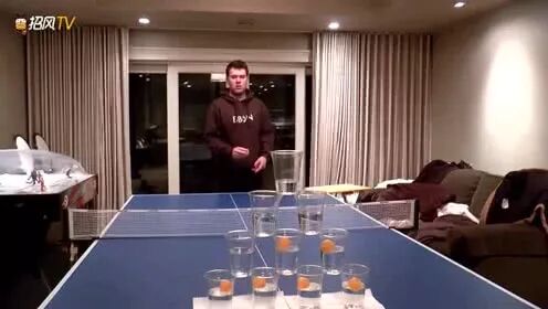参赛者向桌上扔乒乓球,乒乓球必须经过至少一次反弹;