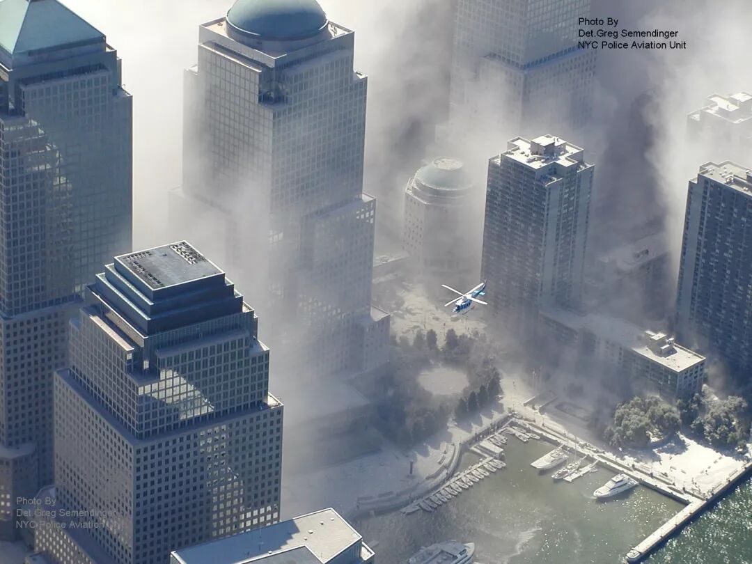 随着世贸中心双子塔的轰然落地,炮台公园城也迎来了最黑暗的一页——致命的灰尘覆盖了整个社区,双子塔的和飞机的残骸飞溅了整个社区,“冬宫“的玻璃穹顶被砸穿,而昔日用来游戏的草坪和走道,变成了下城人们逃离曼哈顿的临时码头。甚至有的住宅区,因为太靠近世贸中心,变成了恐怖袭击的犯罪调查现场,住在那里的人们都无法回家拿东西;整个9月,炮台公园城的全体的居民都被要求离开自己的家,另寻住处。