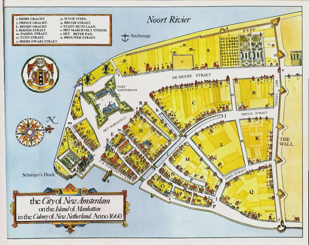 1660年的纽约地图,The Wall 就是今天华尔街所在的位置