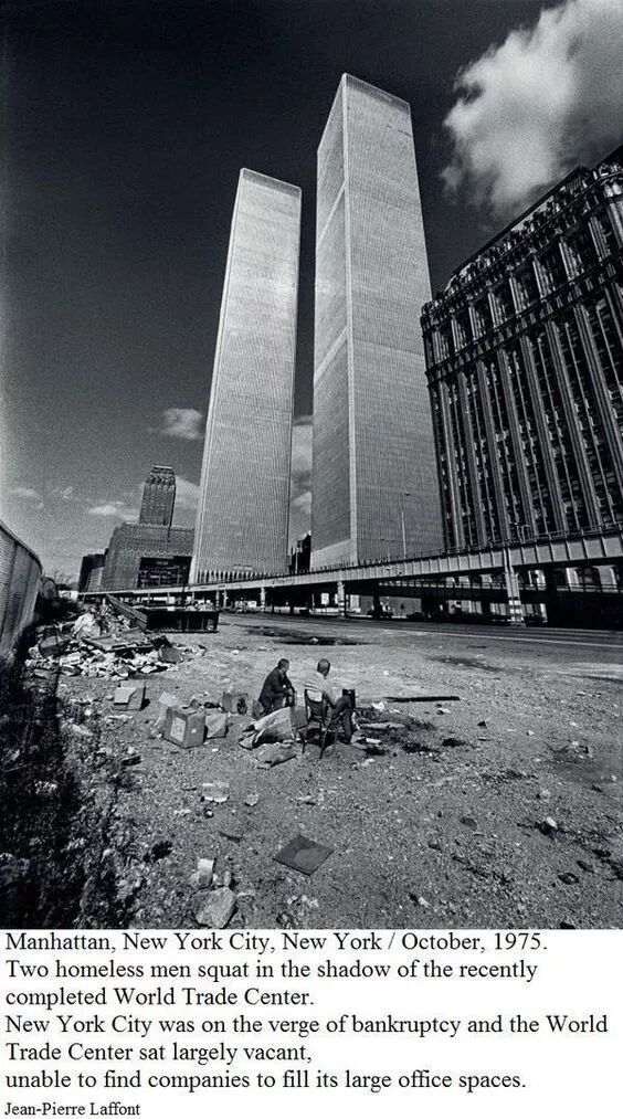 随着70年代大萧条的冲击,这片空地和边上的世贸双子塔一起,空荡了好几年。