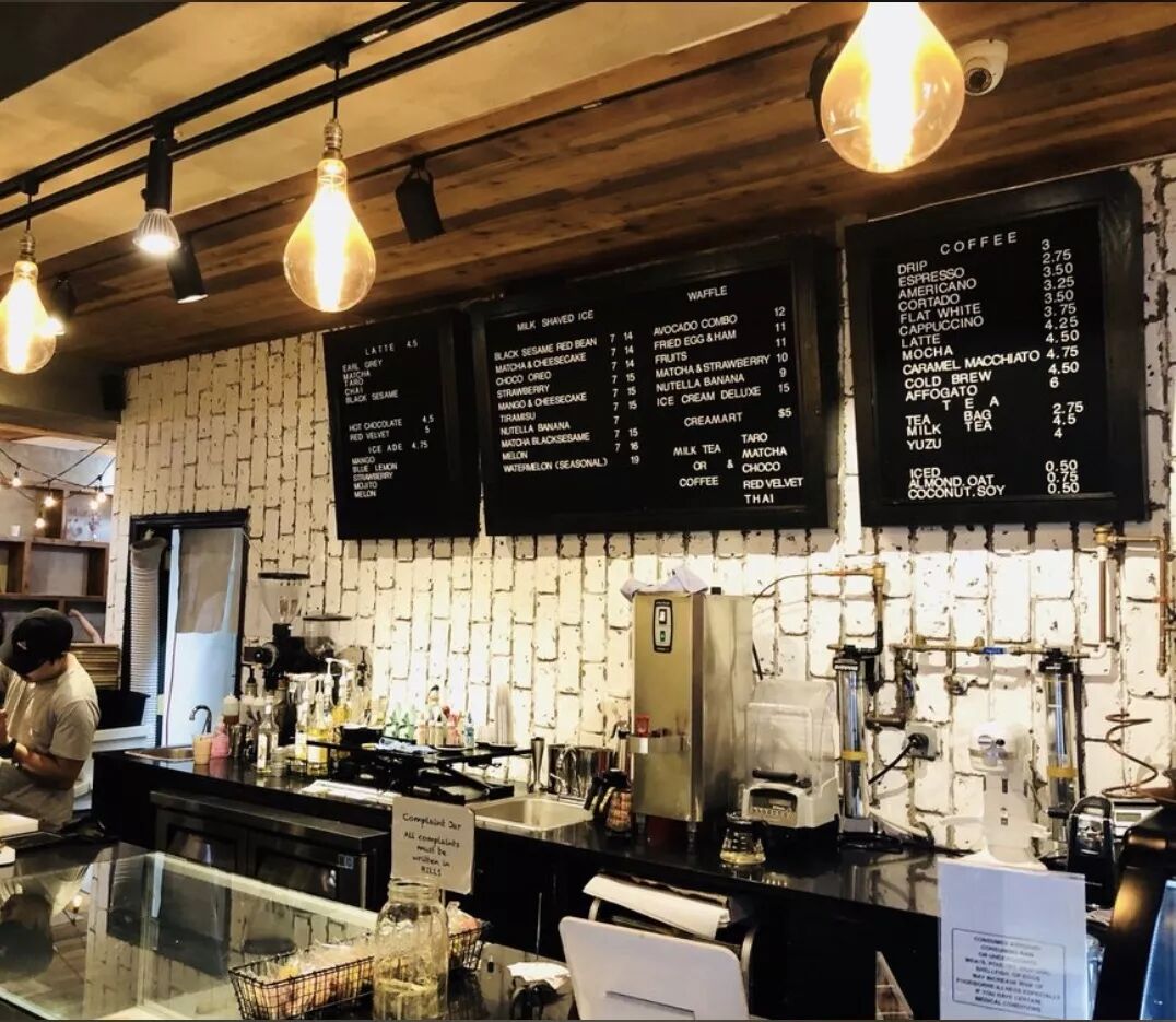 一家色系偏深的甜品店,但是东西却异常可爱,所有饮料都是不一样的卡通图案。