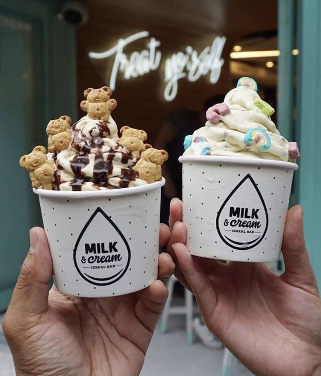 这家的milk shake也是非常出名,不同于一般的milk shake,里面还会有超级多种类的麦片选择,如果只想吃cereal还可以配上他们专有的不同flavor的高颜值牛奶。
