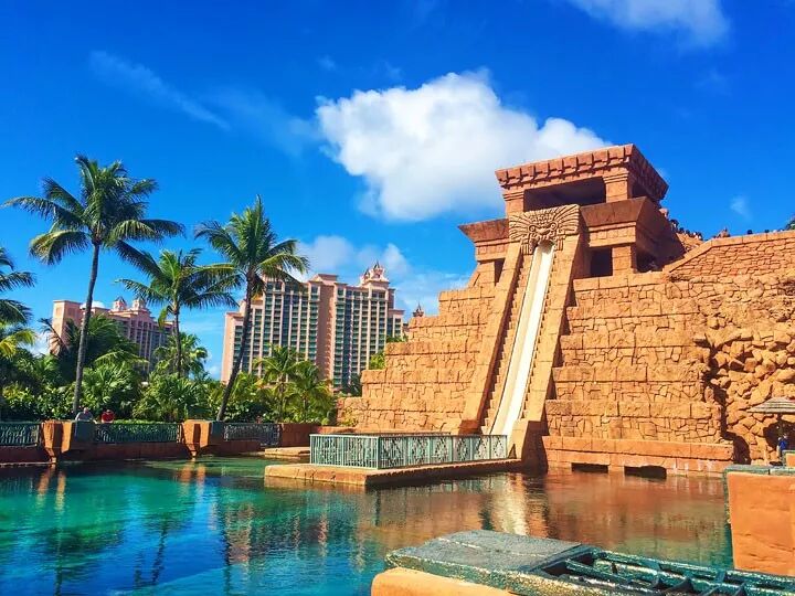 天堂岛上的亚特兰蒂斯酒店以西方人念念不忘的 "失落的帝国" 为主题,酒店里还专门建了一座表现这一主题的水族馆,巨大的海洋馆中放置了很多建筑废墟、沉船、铁锚,成群结队的海洋动物穿梭在废墟之间,仿若置身于神秘的亚特兰蒂斯。