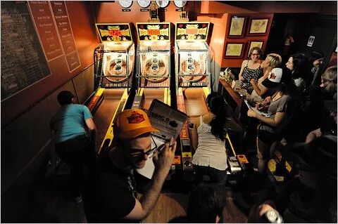 Skee-Ball(滚球)是一种欧美盛行的经典街机游戏。玩家需要将小球准确地投入到圈中来获取相应的点数,当点数达到一定数量时就可折成兑换券来兑换小奖品。布鲁克林这家酒吧就有Skee-Ball街机,每天都有Happy Hour,周四5-8pm和周日2-8pm期间可以免费玩Skee-Ball!