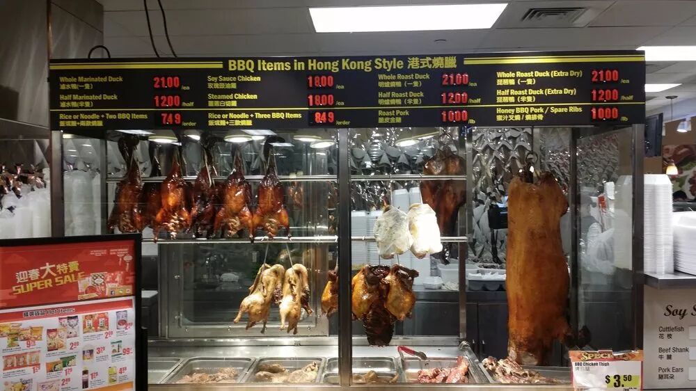 德昌市场的结构很简单,就像一条长廊,两边卖各种食材。它主要分为两大部分,前一部分像市场,卖蔬菜和生肉等,也卖普通美国超市买不到的各种内脏,后半部分像一个food court,卖各种各样的熟食,包括烧味,包点,点心等