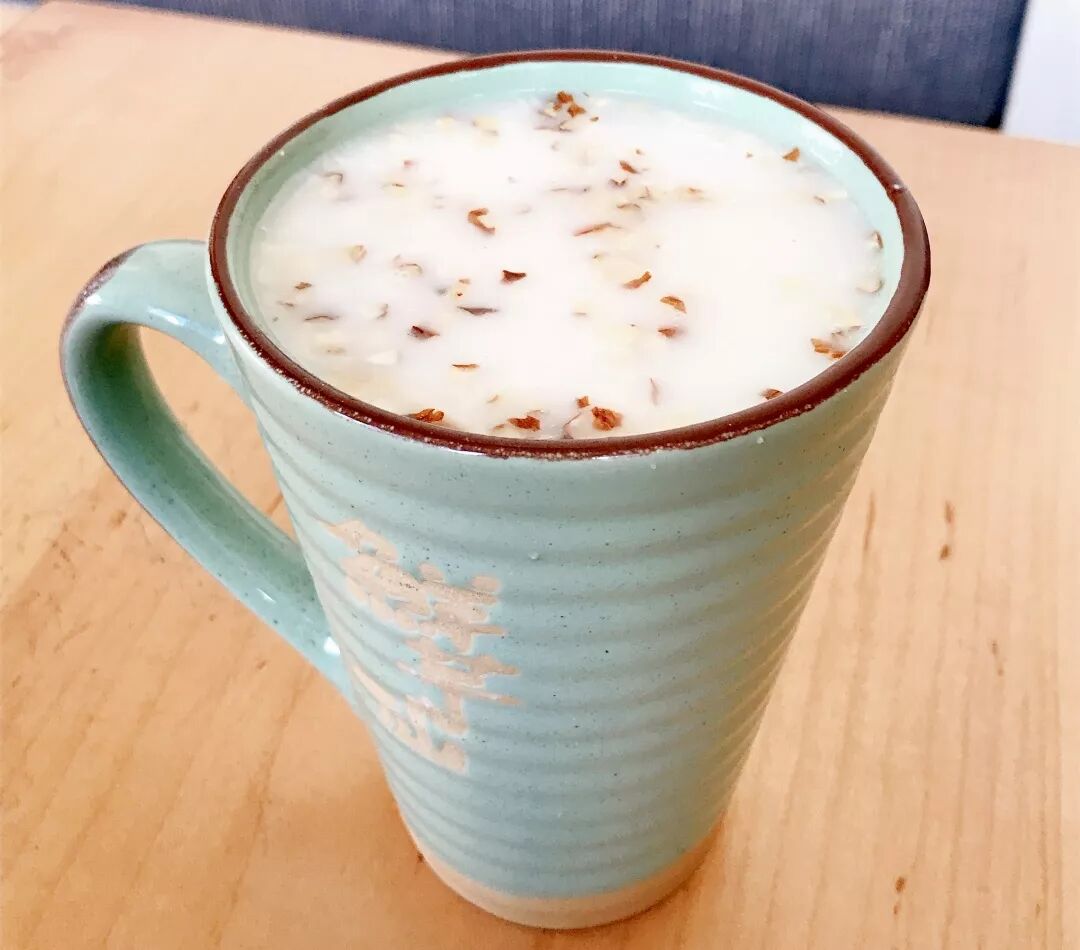 精心熬制的奶白色杏仁露