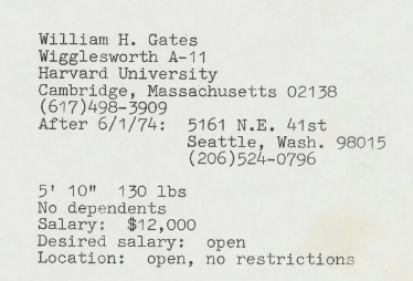 除此之外,盖茨的风格和形式与传统招聘人员的期望相当一致。尽管存在缺陷,但可以肯定的是,盖茨很清楚的知道自己在做什么,想要什么。在这份简历提交的12年后,他成为了亿万富翁;六年后,他成为世界首富。