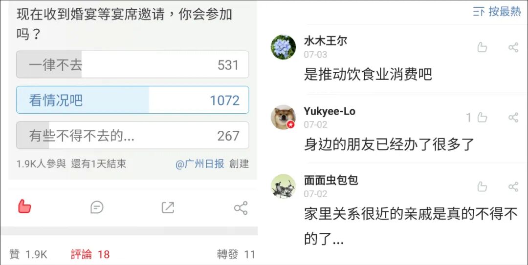 △网友反映,身边很多朋友已经办了婚宴