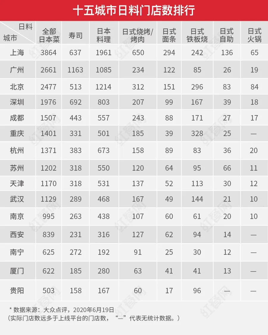 此后,日料在一线城市遍地开花,甚至大量出现在二三线市场核心商圈。根据日本驻华大使馆的最新调查数据,到2019年,中国的日料店已经近65000家。