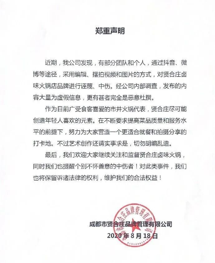 十里堡附近并没有西贝莜面村餐厅,如果想吃一碗西贝的莜面鱼鱼,盒马里这辆小餐车就能满足需求。在这个摆摊式经营的餐车上,大概装有十多个菜品。据销售人员介绍,这些菜品都由西贝研发,可以现场加热食用,也可以外带。菜品价格在数十元至二百多元不等。盒马鲜生方面表示,西贝与盒马的合作商谈始自今年3月,以手推车形式售卖7月份推出,目前只有北京十里堡店铺施行。其他盒马门店,西贝的产品仍在冷柜中与其他的冷冻半成品菜一起陈列。具体的选品则由双方共同推进,目前盒马内售卖的十多个菜品是西贝经过长期研发、餐饮口味还原度最高的商品。除了盒马门店,消费者也能通过盒马APP、西贝功夫菜小程序、西贝甄选,以及京东天猫等平台购买到这些菜品。今年5月,西贝正式发布了对“贾国龙功夫菜”的规划,预计其年营收将超过10亿元。当时有分析称,“贾国龙功夫菜”承担着西贝第二增长曲线的重要任务。不过除了西贝,海底捞、眉州东坡、旺顺阁等各大知名餐饮品牌也盯上了家庭餐桌,西贝的预包装食品要想在这里赢得消费者并非易事。在娱乐圈中,明星搞副业已经是一件很普遍的事情。不少明星利用自身的知名度来招揽生意,赚得盆满钵满。但近年来,明星开店却频频出事。近日,又有一位明星因为自家火锅店引起争议。8月18日,某抖音账号曝出一段视频显示,陈赫开的火锅店“贤合庄”锅底漂浮着蠕动蛆虫,还有消费者吃出蜗牛“大腰子”、防腐剂。该内容很快登上抖音热点,不过,该视频并没有提到是贤合庄哪家门店。记者搜索评论发现,针对该视频的言论分为两派。反对派认为明星火锅更要注意食品安全:“明星也只是打着明星的幌子,饭不一定好吃”。另一派则认为有人蓄意陷害:“自带道具”“故意陷害”“黑粉故意搞的吧?”8月18日,贤合庄官方微博发布声明对相关视频做出回应:近期公司发现有部分团队和个人,通过抖音、微博等途径,采用编辑、摆拍视频和图片的方式,对贤合庄卤味火锅店品牌进行污蔑、中伤。经公司内部调查,发布的内容为虚假信息,更有甚者完全是恶意杜撰。声明还同时表示,贤合庄将不断提高菜品质量和服务水平,建议艺术创作实事求是,对胡编乱造者保留诉诸法律的权利。![]()