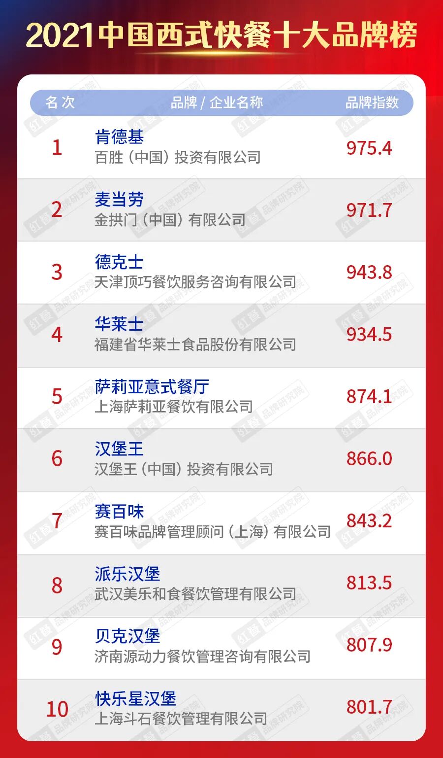 4.2021中国西式快餐&披萨十大品牌
