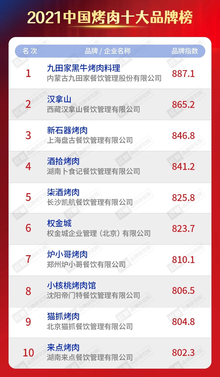 6.2021中国烧烤&烤肉&烤鱼&酸菜鱼十大品牌