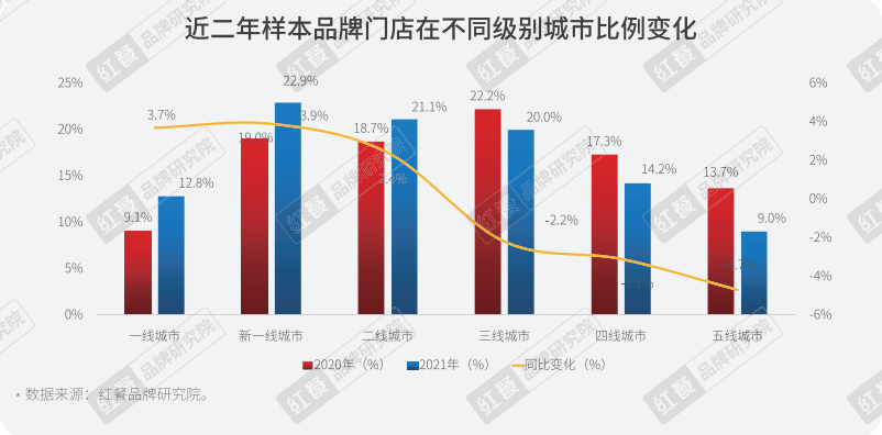 与此同时,2021年新一线城市成为品牌竞争的新战场,下沉不过三线。