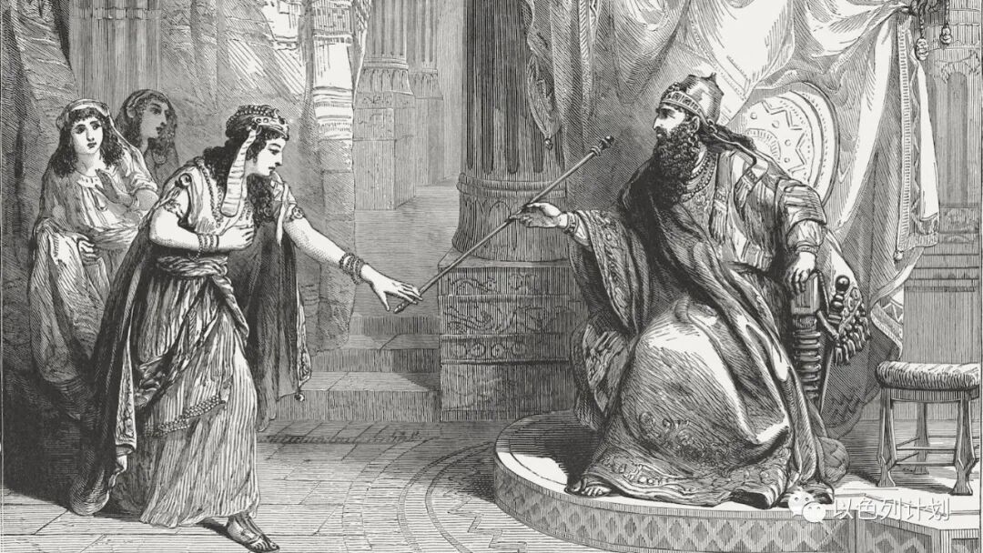 禁食三天后,以斯帖戴上王冠,进了亚哈随鲁王的房间,王立刻伸出了他的权杖问“你的诉求是什么?哪怕是一半的江山也必赐给你!”,以斯帖说:“王若以为美,我要请王和哈曼,吃我所预备的筵席。”