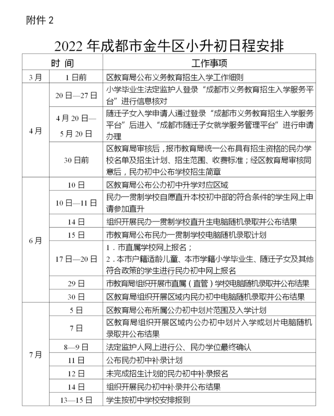 7月15日前,区教育局通过“成都市随迁子女就学服务管理平台”等告知随迁子女就读学校安排情况。