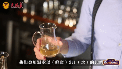 取适量蜂蜜,用温水按照(蜂蜜)2:1(水)的比例调和备用,蜂蜜选用花蜜为佳。