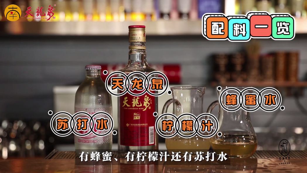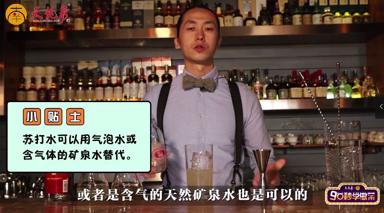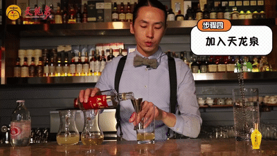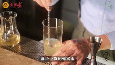 在家调制此款酒不需要精准测量,只需要记住材料份数就好啦~(一份蜂蜜水、一份柠檬汁、两份苏打水以及三份天龙泉)